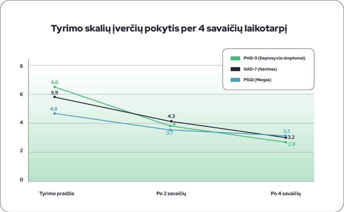 - Ärevuse ja depressiooni sümptomite märkimisväärne vähenemine;